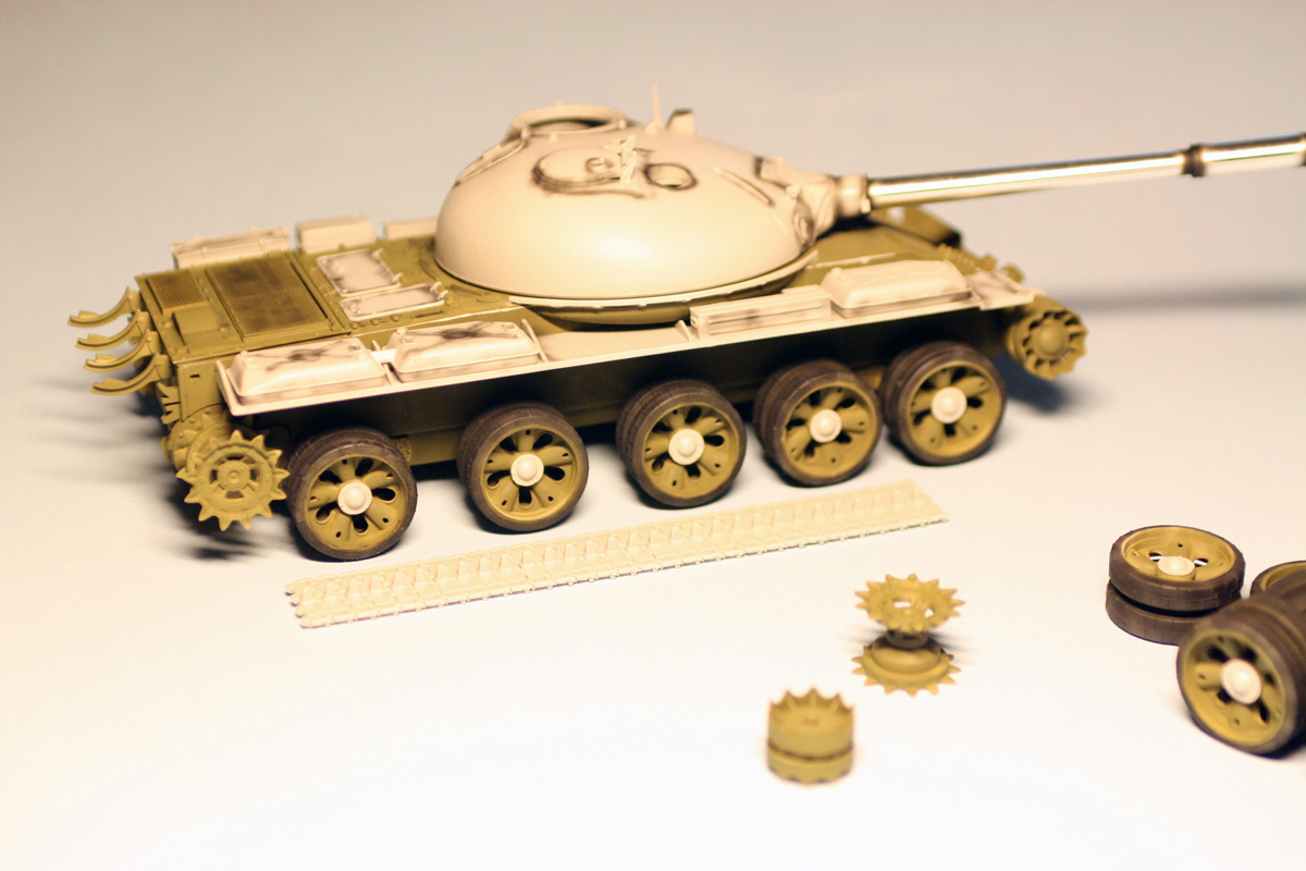 были приобретены MIGовские смывки для Советской/Российской БТТ. то, что по идее должно было давать серый оттенок на зеленом оказалось жидкостью для запыления. в итоге, танк запылен.