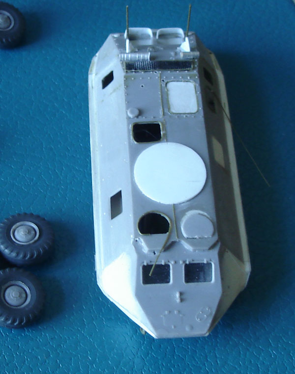 Пытаюсь из доширака изготовить защитные кожухи шахт радиаторов... Это моя первая и последняя модель БТТ в 72-ом масштабе. Хватит, намучились... Теперь только в 144-ом... Т.е. - в 35-ом.