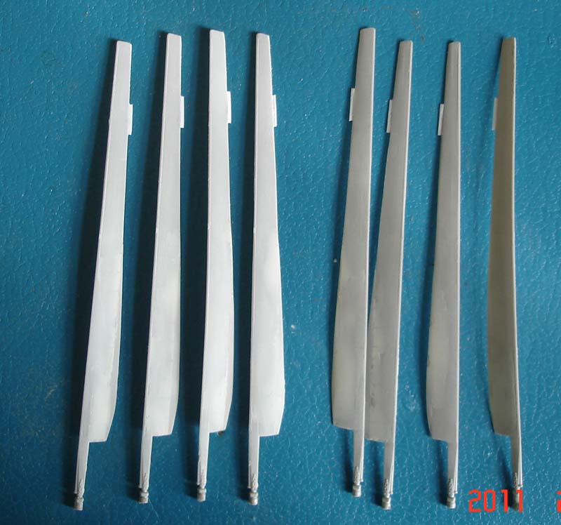 Примерка передних лопастей. Ещё не крашено, лопасти не приклеены, вал не доработан.